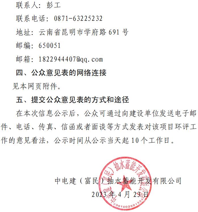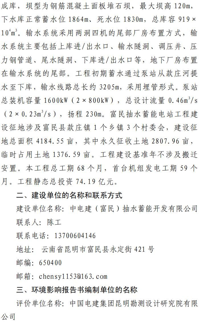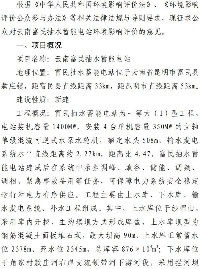 云南富民抽水蓄能電站環(huán)境影響評價第一次信息公示